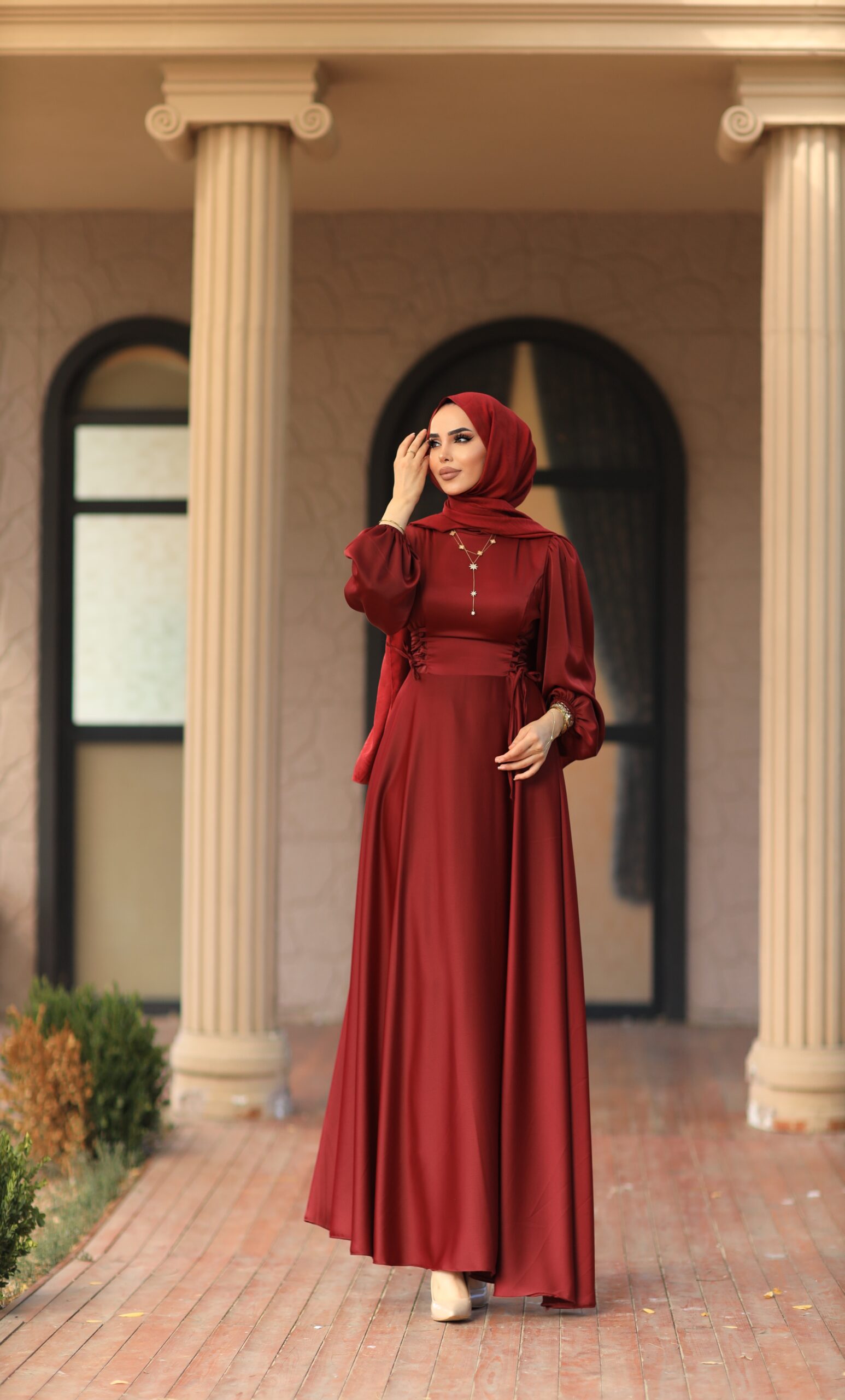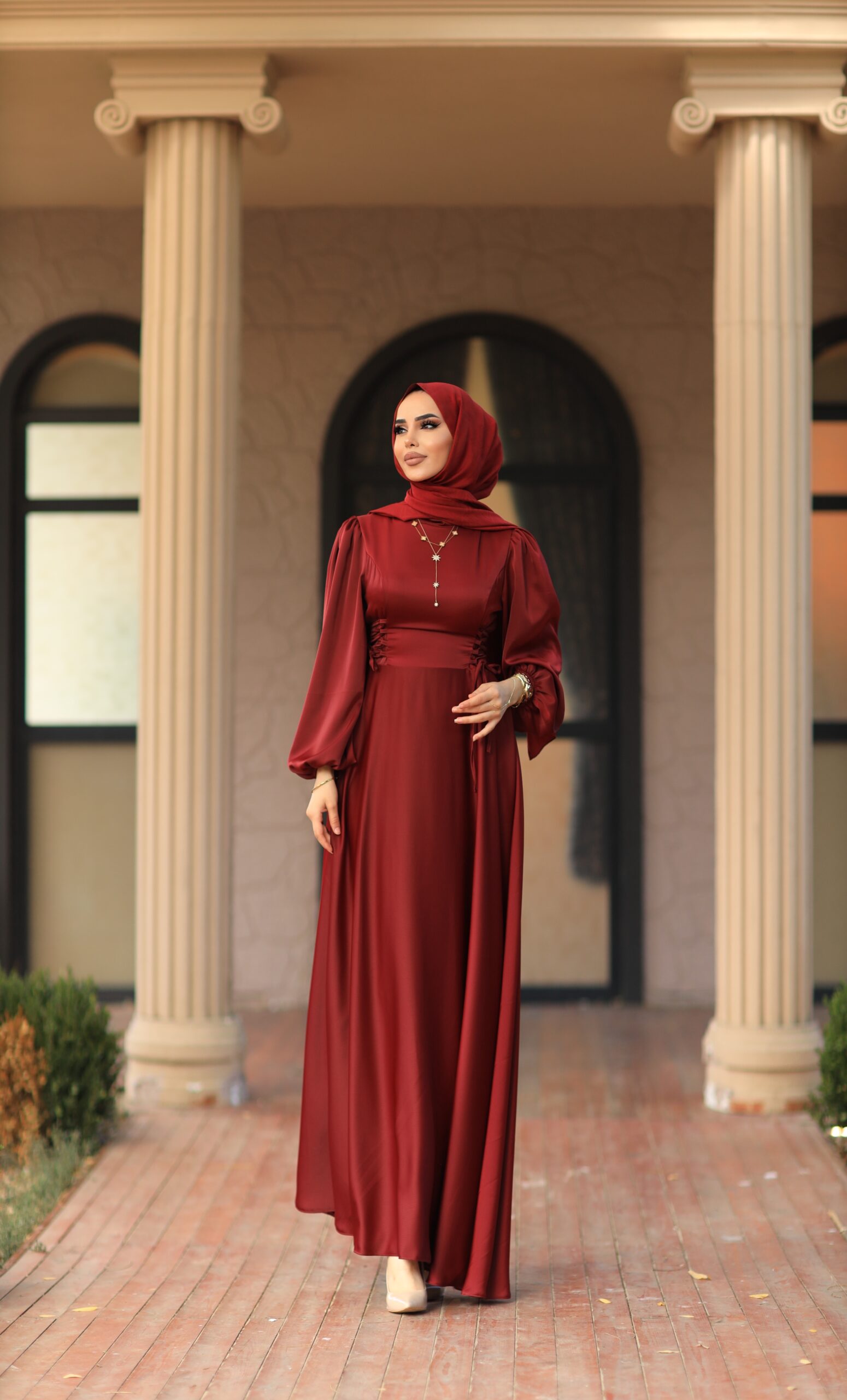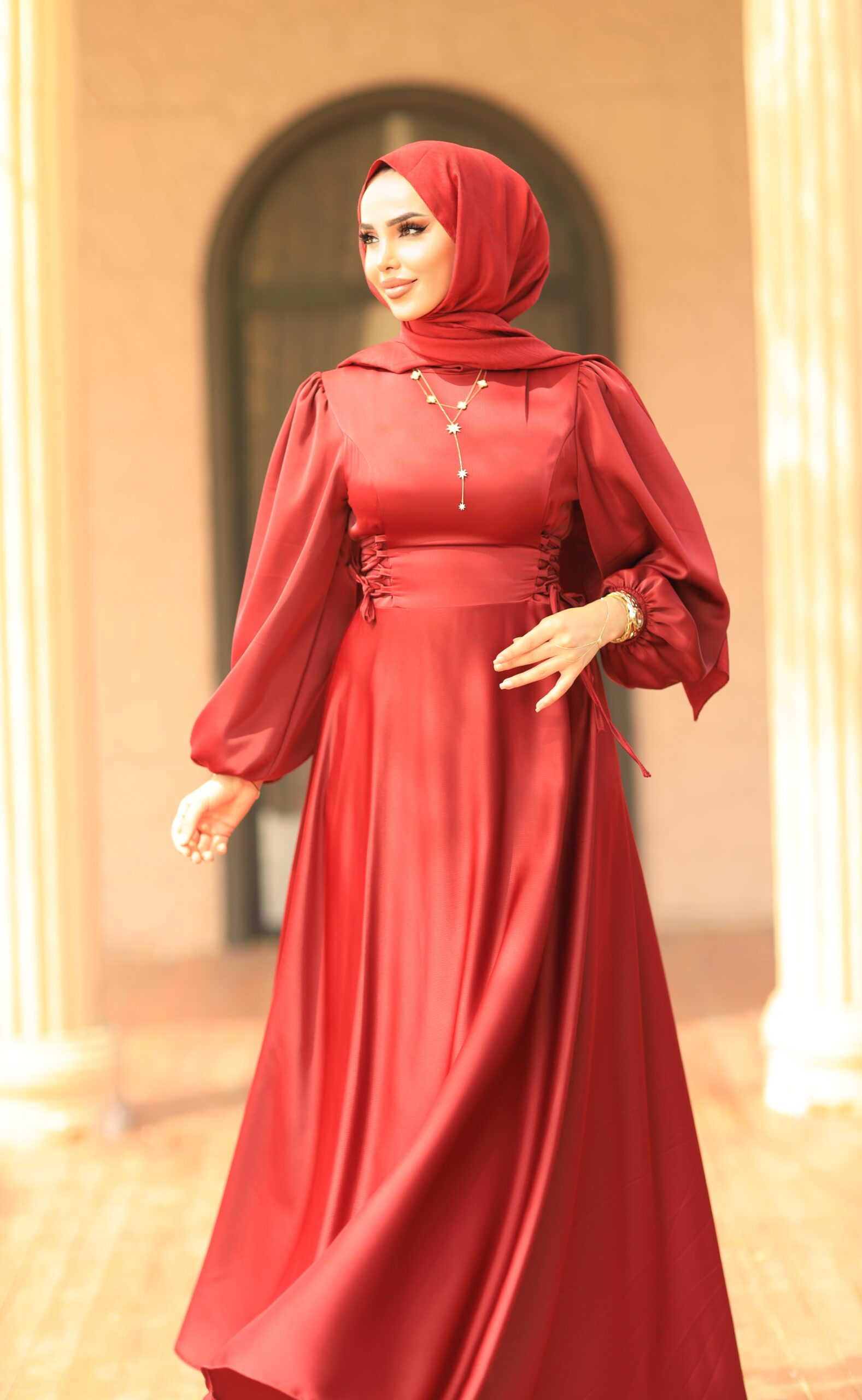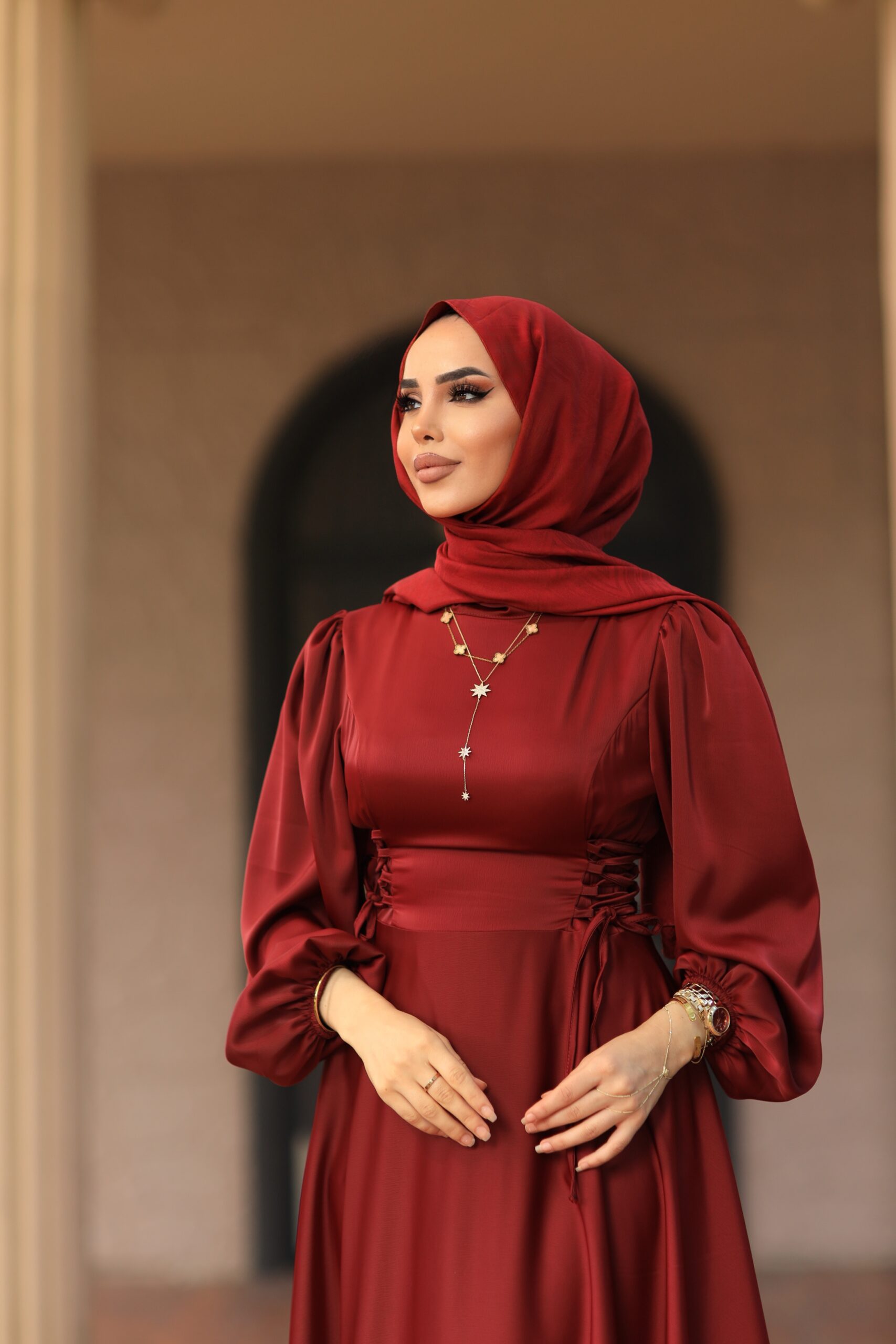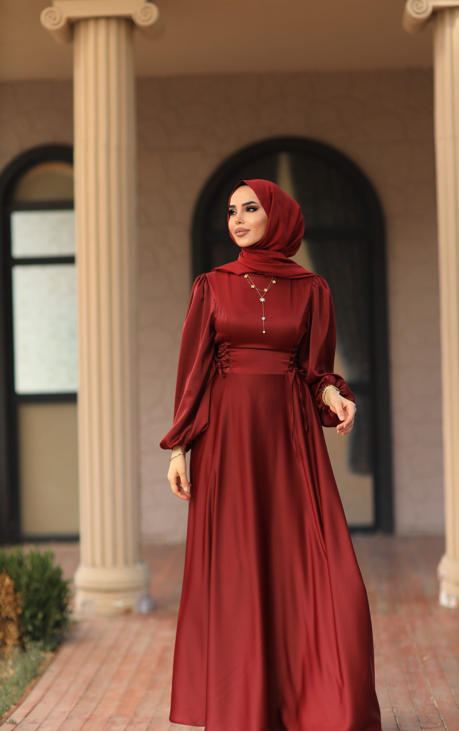 Zarif ve modern çizgileriyle öne çıkan bu saten tesettür elbise, özel günlerinizde şıklığınızı tamamlayacak. Akıcı kumaşı ve ışıltılı dokusuyla hem rahatlığı hem de zarafeti bir arada sunar. Bel kısmındaki bağlama detayı vücut hatlarını zarifçe ortaya çıkarırken, geniş etek kesimi özgürce hareket etmenizi sağlar.